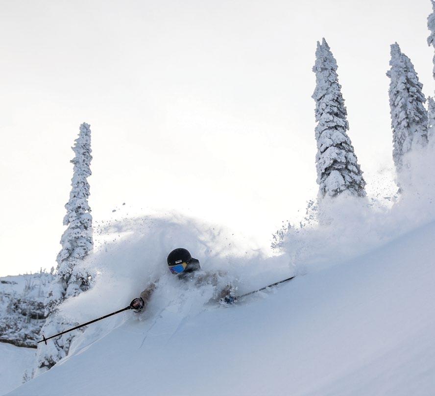 + FLASHLIGHT. Designed in BC, this waterproof flashlight throws a 2000-lumen beam at max brightness and will run for 26 hours on five per cent brightness (100 lumens). Built-in intelligence will reduce power to avoid overheating and a digital display shows exactly how much juice is left. Best of all, the USB-C charging connector allows you to charge your phone, Lynx OGT headlamp, or anything else that connects via USB. www.lynxogt.com // Freeskiing pioneer Glen Plake’s first signature ski has been a long time in the making, but the ELAN RIPSTICK
