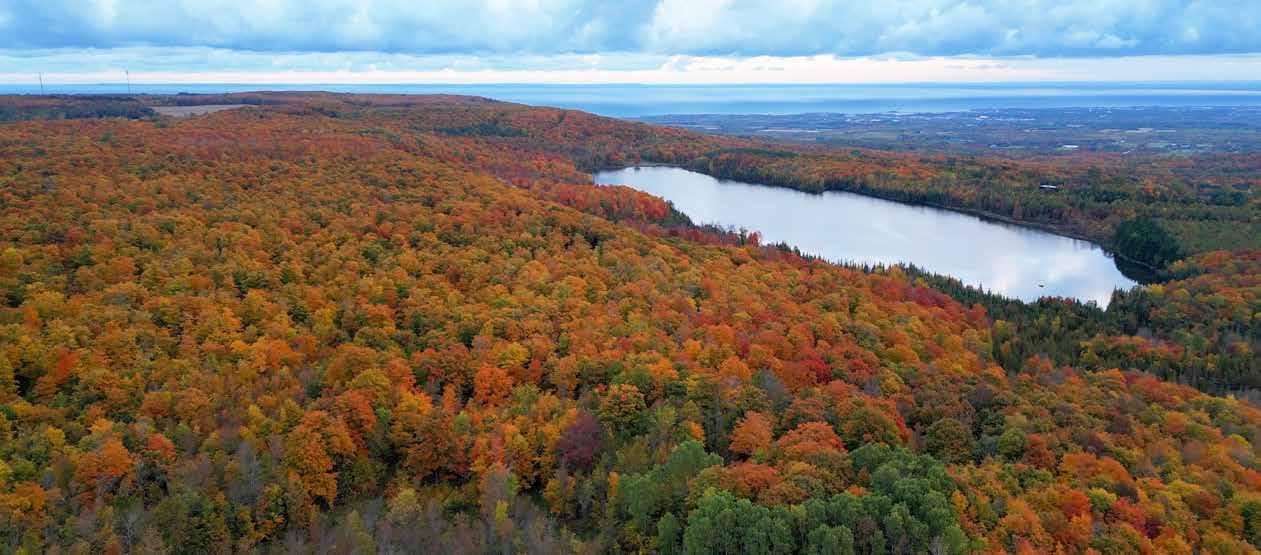 Case in point: from his back door, Woolner and his wife can step into skis and start climbing the escarpment. “You can hear the gales roaring over the top of the cliffs,” he says. “It sounds like you’re next to a waterfall or the edge of the ocean or Lake Huron when it’s really going off.” Below the cliffs, the air is still. “There’s a beautiful,