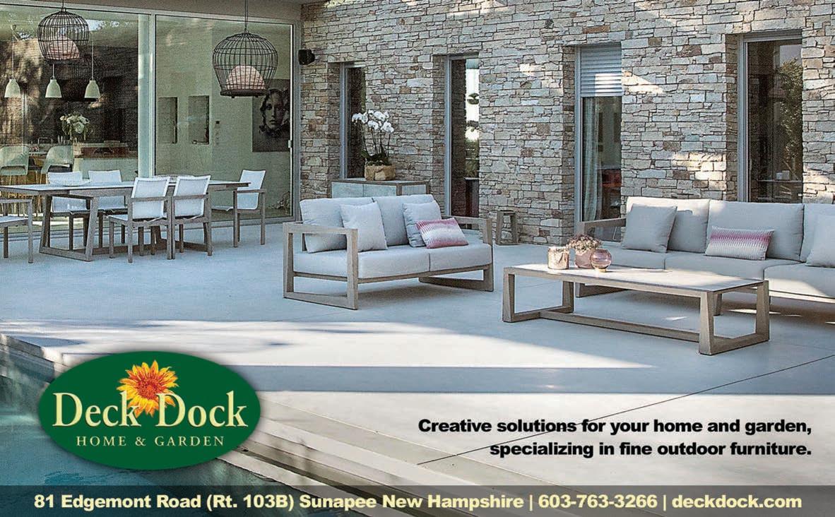 The right furniture will make your outdoor space just as beautiful and comfortable as inside your home. From club chairs and swivel rockers to sofas and sectionals, Deck Dock Home & Garden in Sunapee, New Hampshire, has everything you need to create an amazing gathering space—and many pieces are totally customizable.