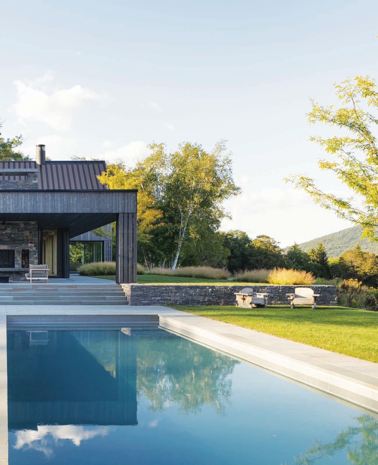 Set behind a historic New England home, this wellnessfocused outdoor space includes two Soake Pools, one for cold plunging and another for swimming. It feels as though it has always belonged to the landscape, shaped by time and quietly integrated into its surroundings.