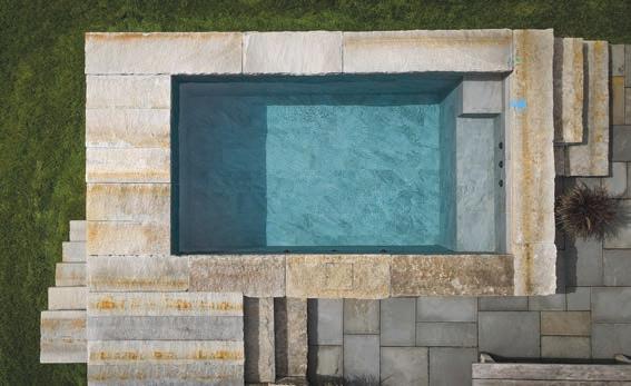 Year-round use is not novel in some parts of the country, but in New England, a Soake Pool integrating reclaimed stone is a gift in all four seasons. In a region where landscapes are shaped by the season as much as design, stone offers continuity. It holds its presence through snow, frost, and thaw. Paired with a pool designed for year-round enjoyment, the terrace becomes a constant even as everything around it shifts. Steam rises in winter air. Rain deepens the color of the stone. Summer brings bare feet tracing familiar paths across its textured surface.