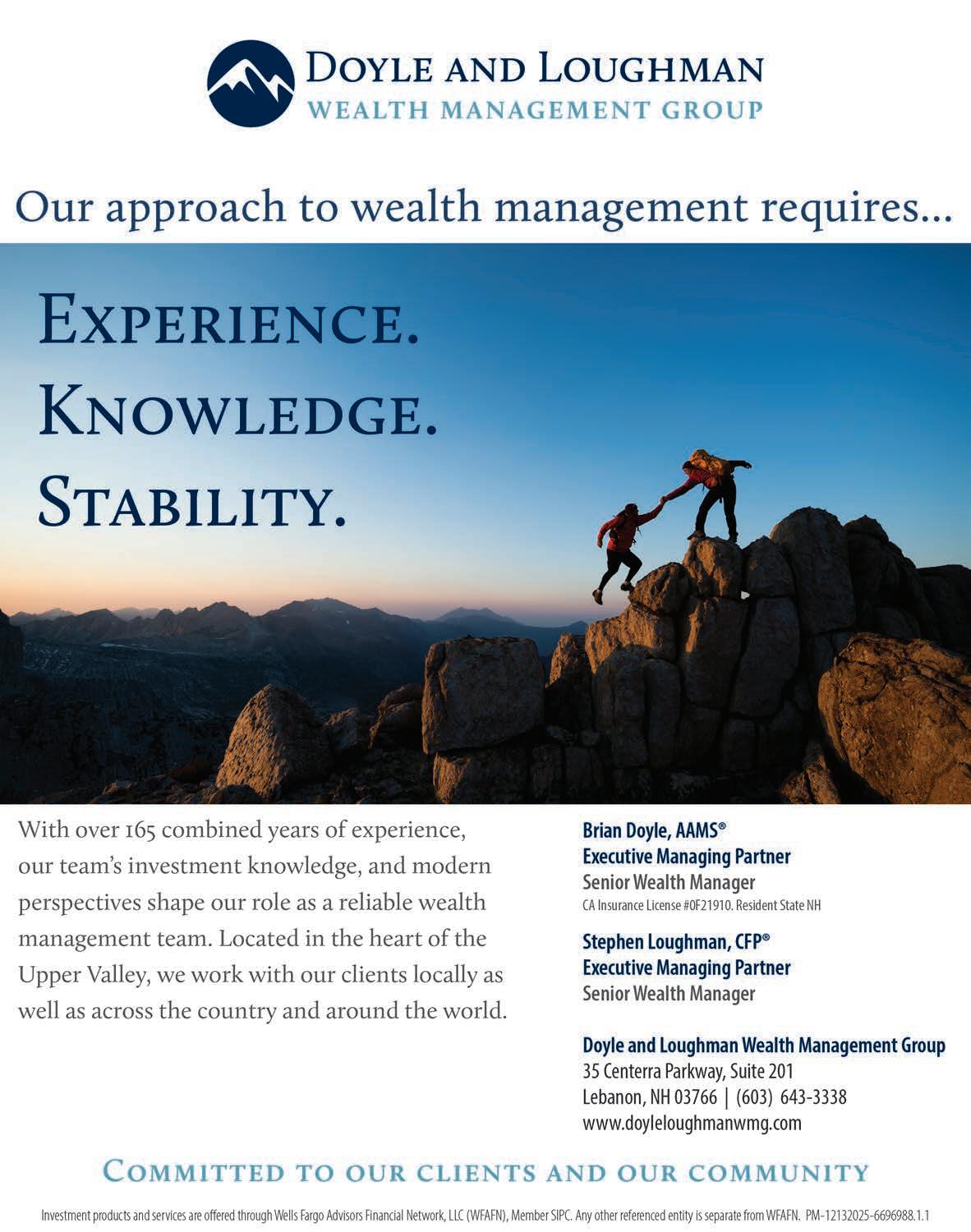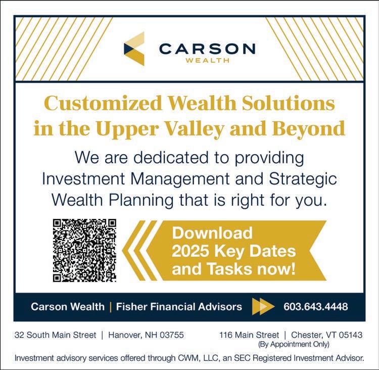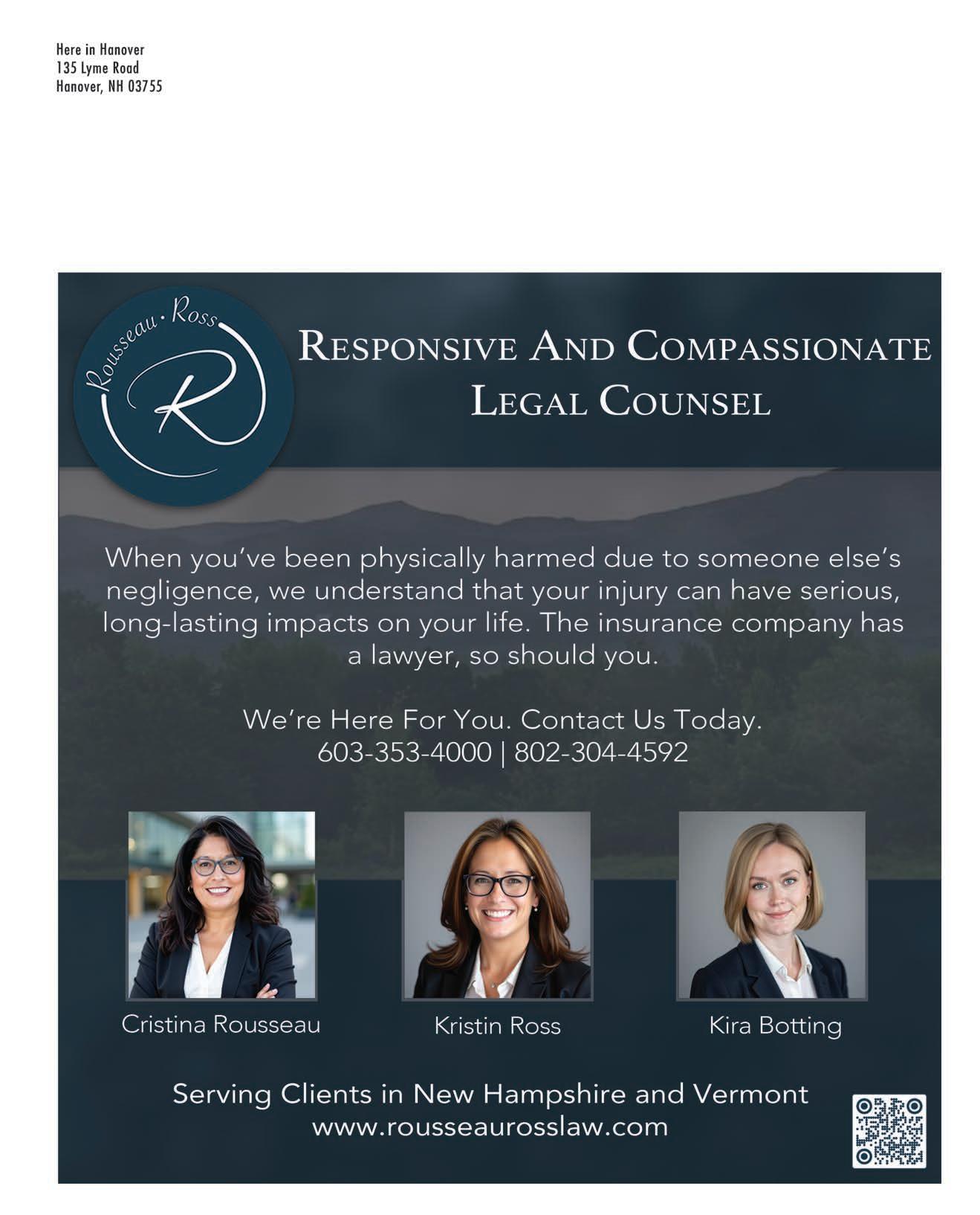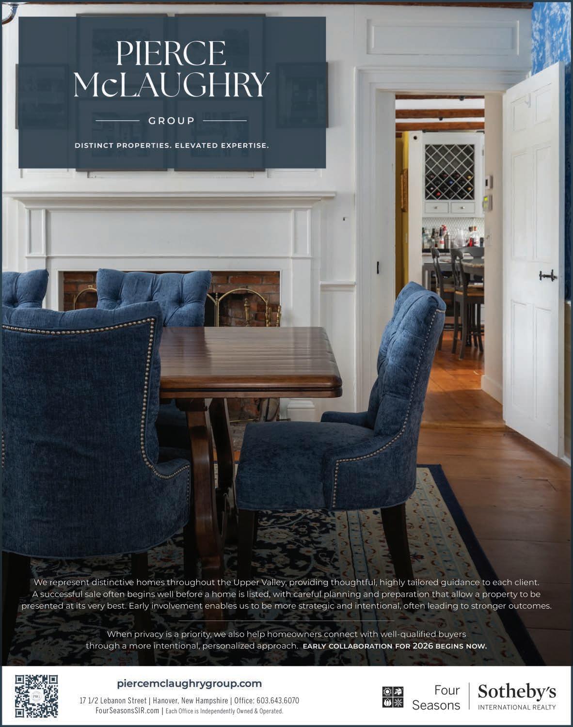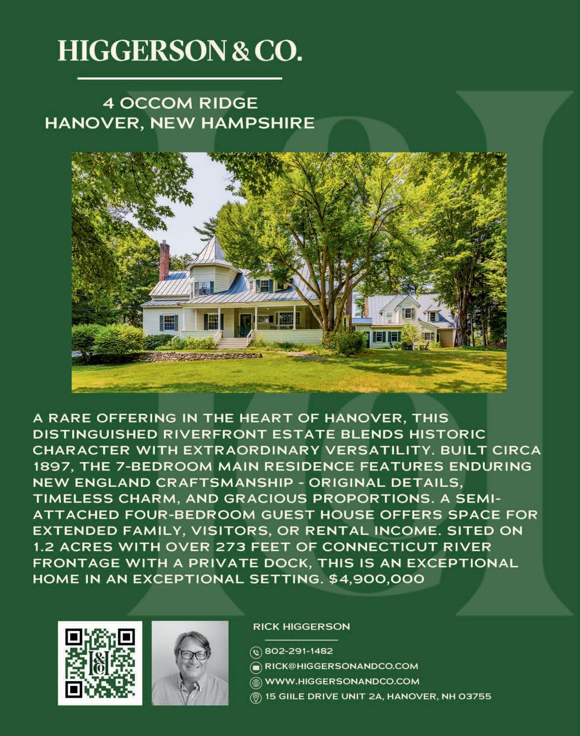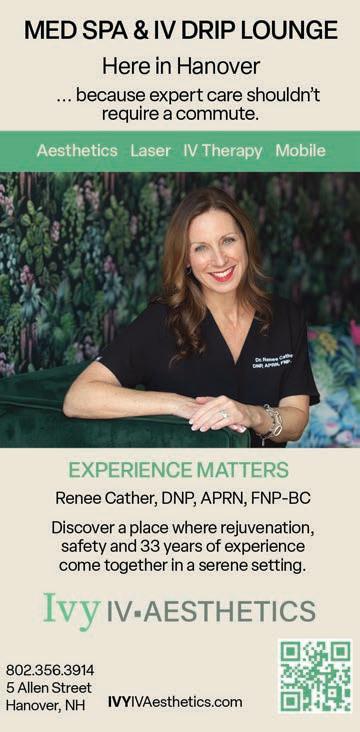 KEEP US POSTED. Here in Hanover wants to hear from readers. Correspondence may be addressed to: Letters to the Editor, Here in Hanover, 135 Lyme Road, Hanover, NH 03755. Or email us at: dthompson@ mountainviewpublishing.com. Advertising inquires may be made by email to ryanfrisch@ mountainviewpublishing.com. Here in Hanover is published quarterly by Mountain View Publishing, LLC ©2026. All rights reserved. Reproduction in whole or part is strictly prohibited. Here in Hanover accepts no responsibility for unsolicited manuscripts, artwork, or photographs.