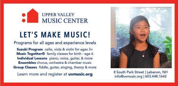 We’re checking in on the Upper Valley Music Center in Lebanon to explore their many options for lessons and performances (page 28), and after a long day of shopping, working, or skiing, relax at the Flying Goose Brew Pub & Grille for a delicious meal and a cold one (page 66).