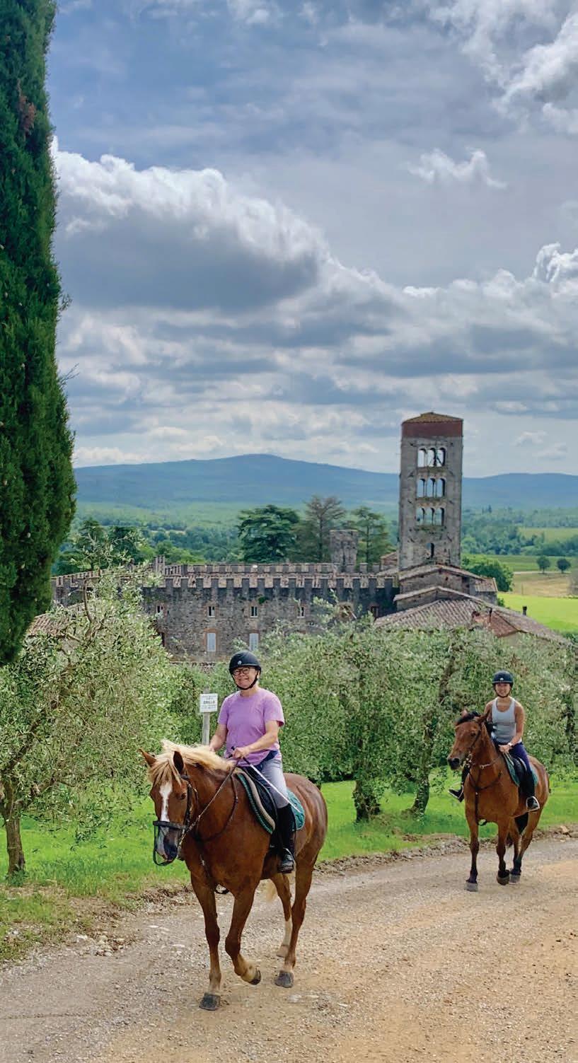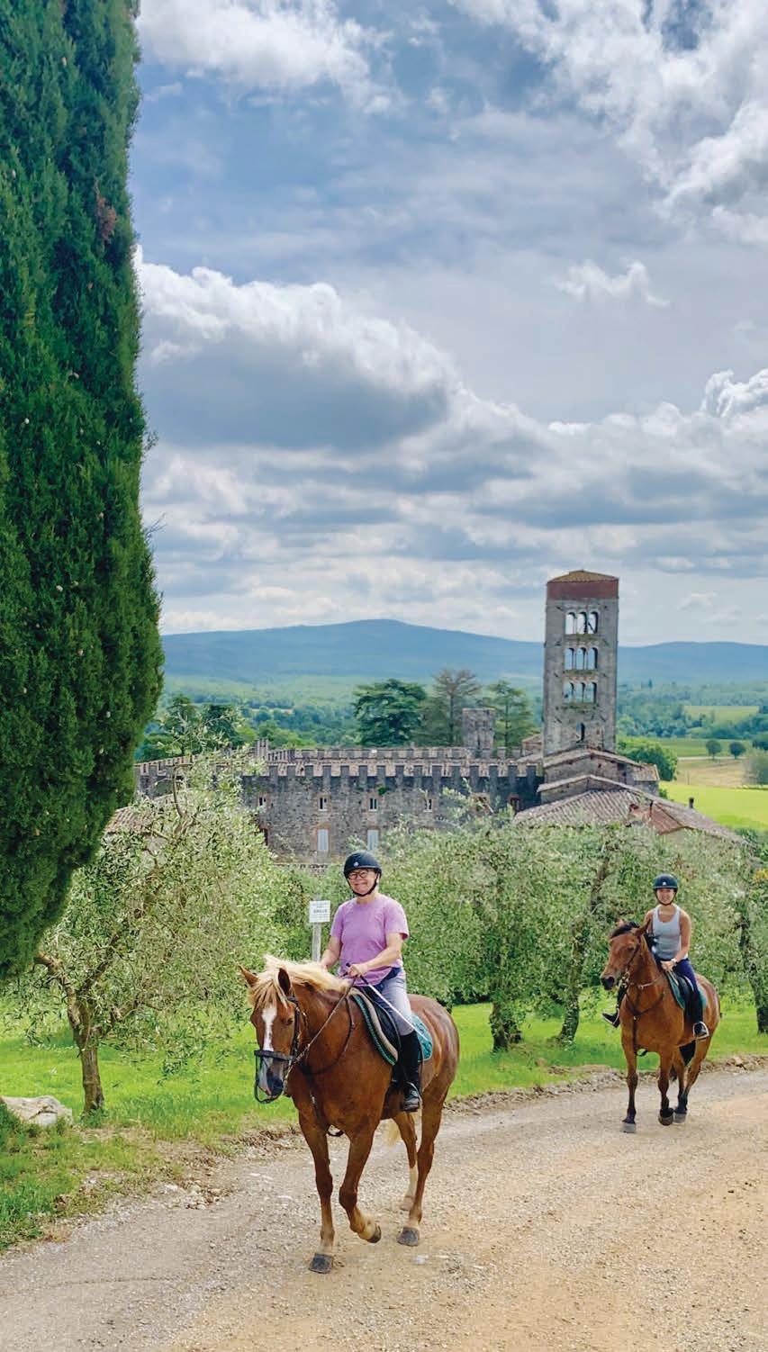 Cover: The Enfield Shaker Museum rose garden. Photo courtesy of the Enfield Shaker Museum. Right: Riding by the Roman Abbey of Badia d’Ombrone. Photo by Sylvia Cooley.