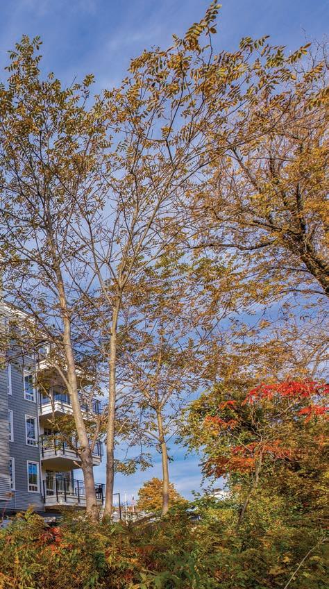 e purpose of plants, or softscape, is to transition from the hardscape of walkways and patios to the yard and beyond. “When viewed in its entirety, the big picture that includes plantings, hardscape elements, and the house should all work together to look balanced and tranquil,” Mike explains. “Vary heights of plants to create sightlines, vary colors and textures, and create di erent areas in the landscape,” he suggests. Native, low-maintenance, sustainable plants, such as viburnum and yarrow, are the goal. “With the warming climate, it’s also important to choose drought-tolerant plants, and look for hardy varieties of natives.” tw