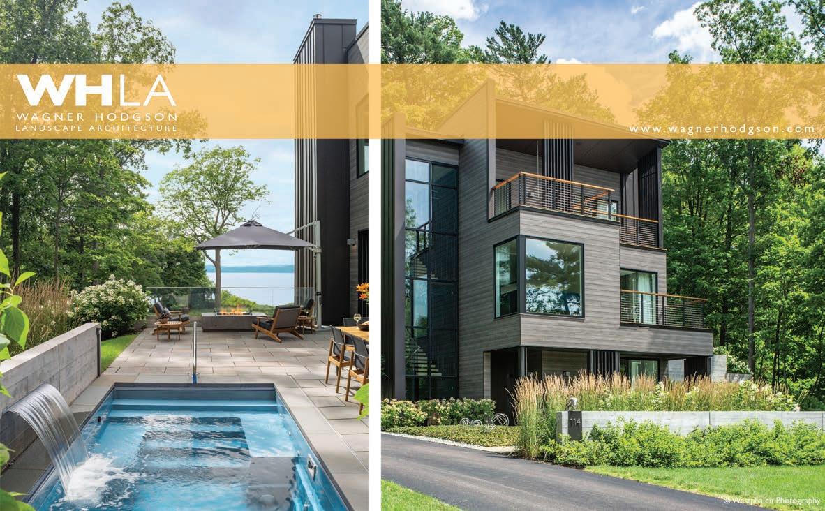Bottom left and right: A clean, formal-designed landscape for four seasons uses a blend of textures, tones, and colors to blend with the house and the natural surroundings through ardsca es and so tsca es