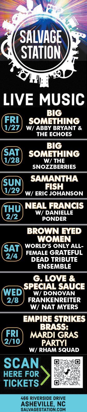 venues with upcoming shows CLUBLAND@MOUNTAINX.COM get info on advertising at ADVERTISE@MOUNTAINX.COM place a web ad at WEBADS@MOUNTAINX.COM question about the website? WEBMASTER@MOUNTAINX.COM find a copy of Xpress DISTRO@MOUNTAINX.COM WWW.MOUNTAINX.COM FACEBOOK.COM/MOUNTAINX follow us @MXNEWS, @MXARTS, @MXEAT, @MXHEALTH, @MXCALENDAR, @MXENV, @MXCLUBLAND CONTACT US: (828) 251-1333 Reproduction in whole or in part without permission is prohibited. Mountain Xpress is available free throughout Western North Carolina. Limit one copy per person. Additional copies may be purchased for $1 payable at the Xpress office in advance. No person may, without prior written permission of Xpress, take more than one copy of each issue. To subscribe to Mountain Xpress, send check or money order to: Subscription Department, PO Box 144, Asheville NC 28802. First class delivery. One year (52 issues) $130 / Six months (26 issues) $70. We accept Mastercard & Visa. STAFF COPYRIGHT 2023 BY