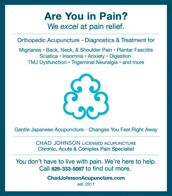 OPINION issues 2023 Publish March 8th & 15th Reserve advertising space in these special issues today! SUNFROOT Sunfroot offers a wide selection of THC, CBD, CBG & CBN medicinals & personal care products. THC: Delta-8 THC, Delta-9 THC* , Delta-10 THC & THCV. Medicinals: CBD Oils, Cannabis Flower, Topicals, Edibles, Supplements, Vapes & Smokes. Cannabis Goods: Hemp Bags, Purses, Totes, Paper, Envelopes, Candles & Homegoods. 30 Battery Park Ave., Asheville, NC 28801 828-545-7970 sunfroot.com Asheville's Best Cannabis Shop & Dispensary We’re happy to offer our expertise to provide you with the ideal products to meet your needs. *All products sold at SunFroot contain less than 0.3% Delta-9 THC by dry weight and are federally compliant. Open 7 days 10am-9:30pm