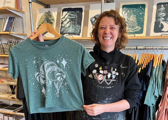 COSMIC RACCOON: Starfangled Press printmaker Kristen Necessary says this crop top with her “cosmic raccoon” design has been a top seller. Photo by Jessica Wakeman