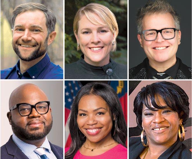 FINAL SIX: This year’s Asheville City Council primary race included 20 candidates. The top six vote-getters, featured in the order of votes received, will compete for three open seats in the November general election. Top row, starting left: Drew Ball, Maggie Ullman (incumbent) and Jeffrey Burroughs. Bottom row, starting left: Keith Young, Antanette Mosley (incumbent) and Sheneika Smith (incumbent). Photos provided by the candidates