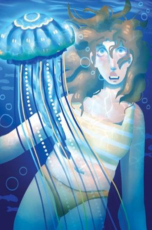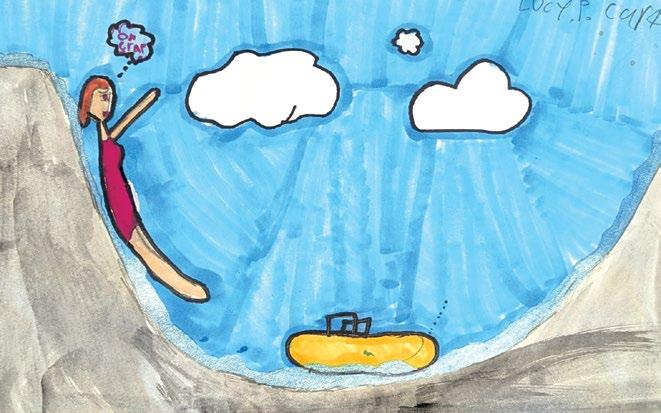 “The story behind this art piece is that when I was little and at the beach a stingray came right in front of me and I was scared,” she writes.