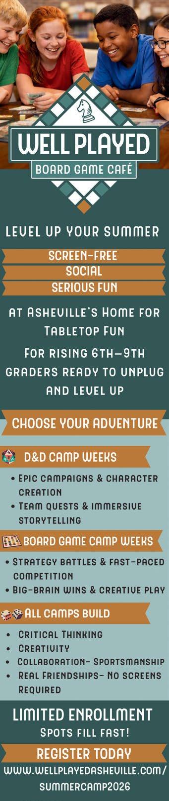 What is the wildest, funniest or most important moment in the lives of local K-12 students? Find out in this week’s Kids Issue, Part 2, which is full of creative and engaging art, essays, poems and short fiction. Plus, check out our annual Summer Camp Guide, which includes information from 70-plus organizations hosting more than 250 camps. This week's cover features campers from Asheville Sun Soo Martial Arts.