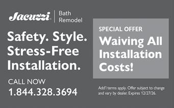 GET A HIGH QUALITY, MODERN DESIGN BATH or shower transformation in as little as One Day. $0 Down, $0 Installation, $0 Payments for 12 months! Call: 1-877243-7050. (NC Press)