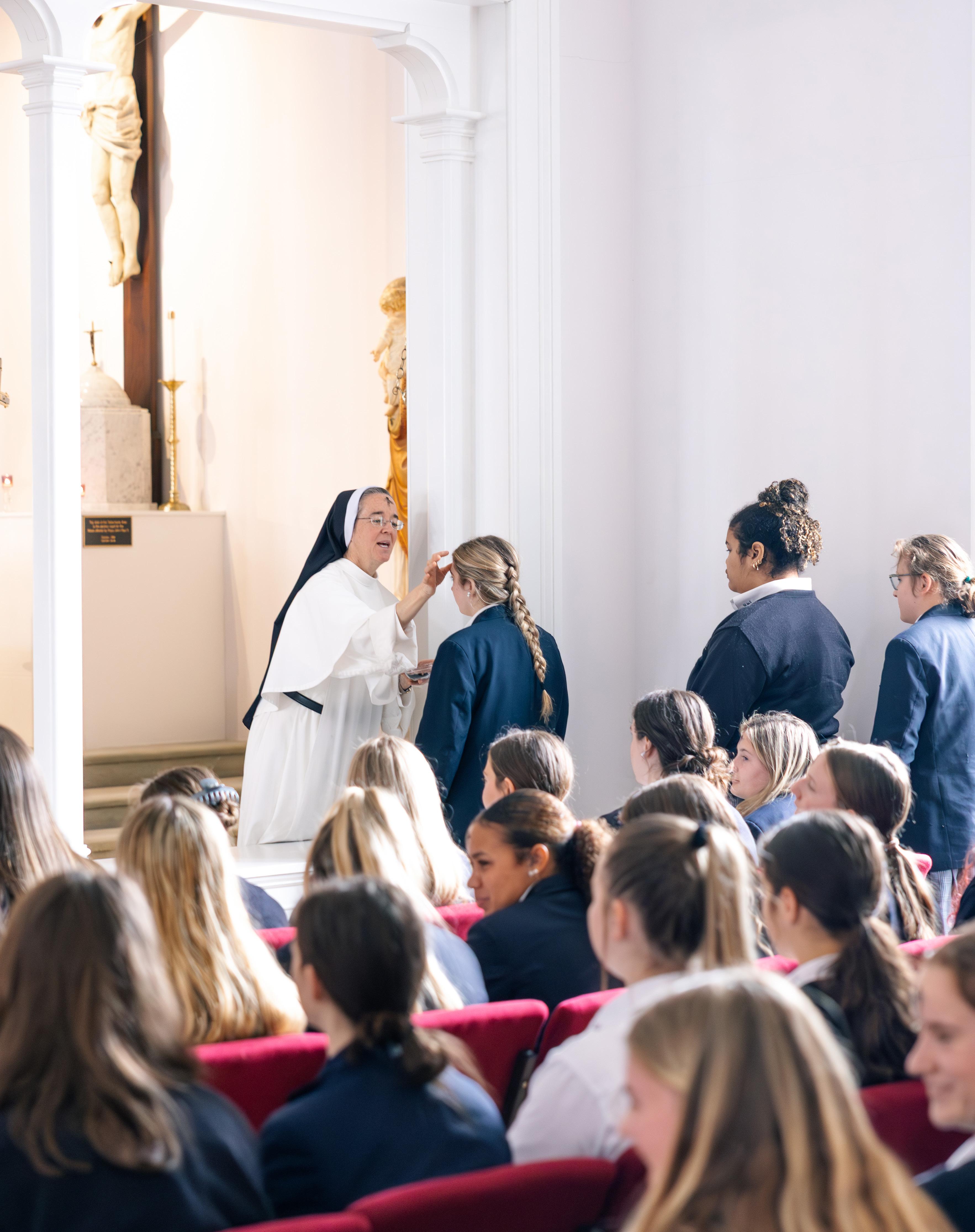 Each week, I hear from current families and alumnae parents about the blessings of a Mount de Sales education. It takes sacrifice and trust to choose this path, yet the fruits are clear. Seeds of faith planted here continue to grow long after graduation. Having served here for eight years, I now encounter our alumnae as young adults in parishes and communities. Priests often remark on their leadership and commitment to the faith — a testimony that fills me with gratitude.