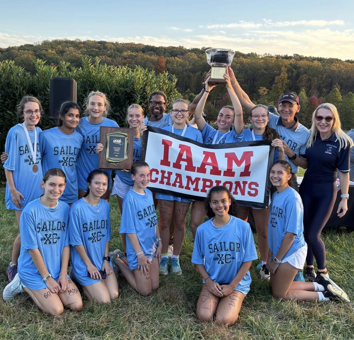 The 2025 cross country season was defined by steady growth, determination, and a belief in what the Sailors could accomplish together. After a summer of disciplined training, the team made a powerful statement at the Maryland XC Invitational. Fiona Smith ran a lifetime best of 18:27, moving to second all-time in program history, while Eva and Mary Bacinski both broke the 20-minute barrier. Siena Bammel delivered a strong fourth-place team finish, and freshman Anna Ring continued her steady improvement with a breakout performance that solidified the Sailors’ scoring five. Those performances provided momentum heading into championship season. At the IAAM A-Conference Championship on October 21, Fiona once again led the way, with Mary Bacinski, Eva Bacinski, Siena Bammel, and Anna Ring completing a composed and unified scoring effort. Running with quiet confidence, the Sailors set the pace early and held their position throughout the race. When the final scores were tallied, Mount de Sales claimed the IAAM A-Conference Championship with a dramatic two-point victory over Notre Dame Prep, 38–40. Four Sailors finished in the top 10 and all five scoring runners placed in the top 20 — a testament to the team’s depth and unity. The championship marked only the second IAAM title in program history and highlighted a season built on hard work, teamwork, and quiet confidence — a foundation that promises continued success for Sailor cross country.
