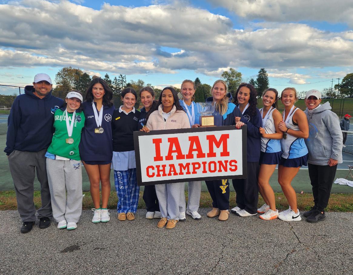 Tennis had an amazing fall season, finishing first in the regular season with a 9–1 record and ending the year with just one loss overall. Seniors Maggie West and Reese Wooden went undefeated at No. 1 doubles and finished first in the championship. Allison Martin and Bella Calis were also undefeated as a team and earned first place at No. 2 doubles. Freshman Averlin Antalics was named IAAM Player of the Week, highlighting the team’s strong individual performances. The team tied for first place in the IAAM Championship Tournament. This success was led by an outstanding group of seniors—Bella, Caroline, Maggie, Reese, Delyla, Lana, and Mariana—whose leadership and commitment were major reasons for the team’s great season.