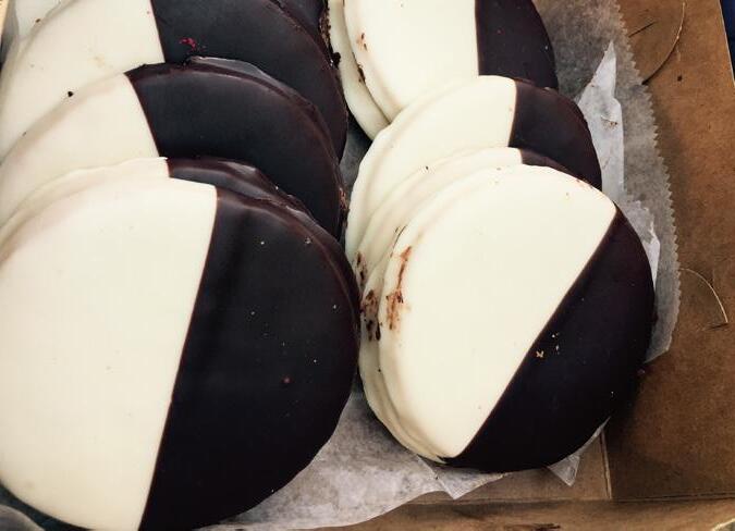 A sweet treat of black-and-white cookies, reminiscent of the Dominican habit