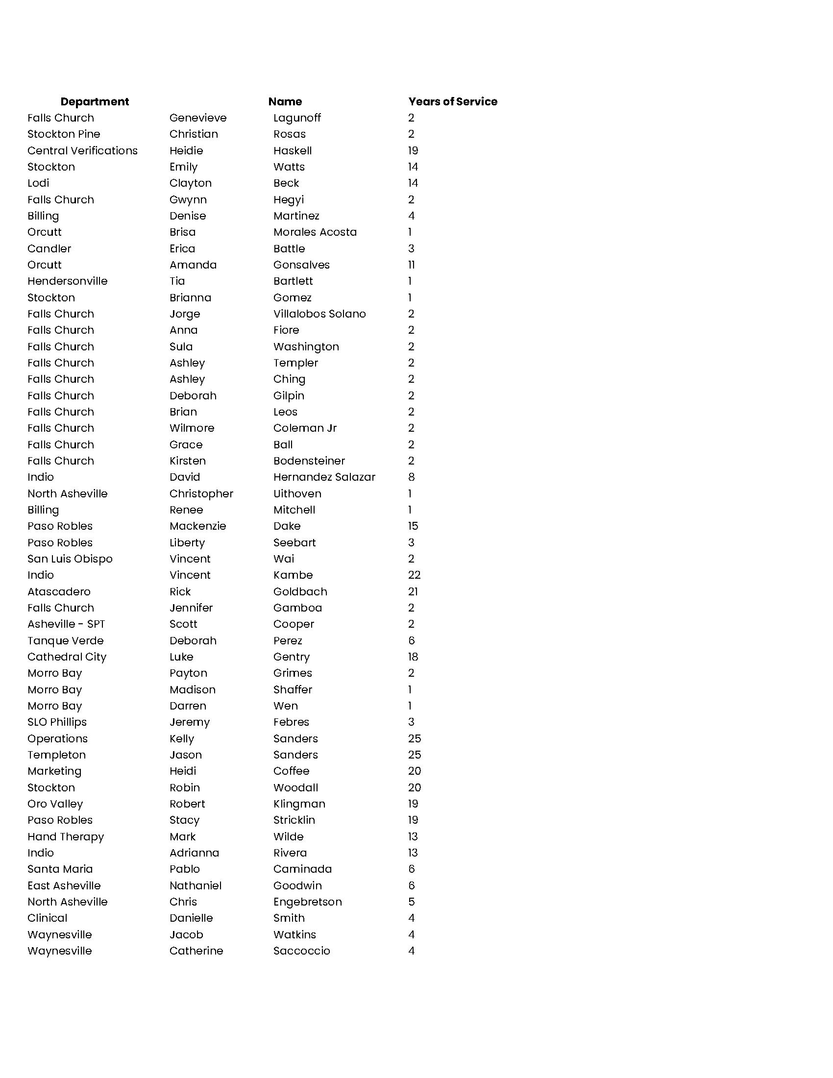 Technology-Enabled Support: We are committed to giving you the tools you deserve. By the end of this year, every employee and client will have access to Everflex, a tool that has already proven to improve patient outcomes and increase access to care. We are also fully integrating Paylocity to streamline new team member onboarding and enhance your access to your company benefits and information.