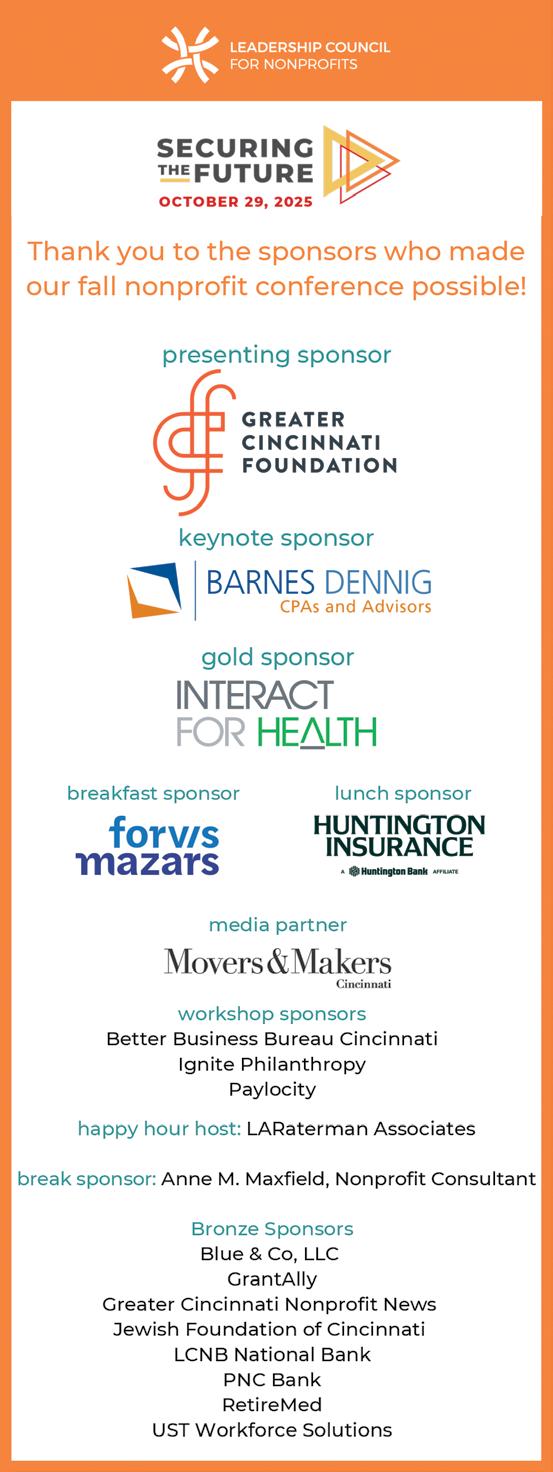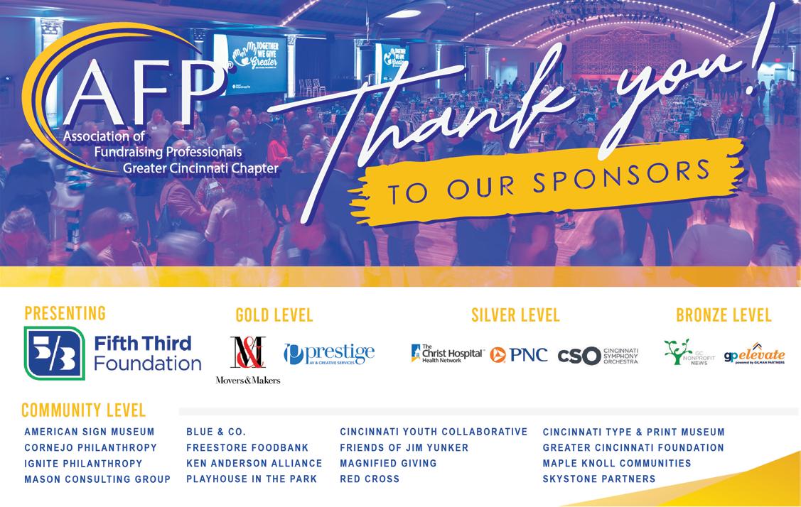 The Association of Fundraising Professionals of Cincinnati held its 2025 National Philanthropy Day event to celebrate generosity across the Greater Cincinnati region. The chapter’s signature annual luncheon took place in the Music Hall Ballroom and was presented by the Fifth Third Foundation. The event highlighted the powerful impact of giving on social services, the arts, education and more. Honorees: