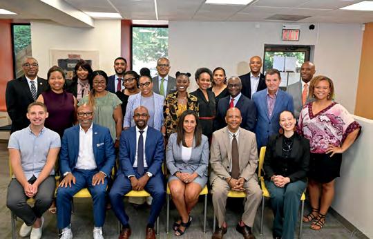 Flywheel's 2024 Elevate Equity cohort including Dr. Calista Brooks, Flywheel Executive Director Laura Randall-Tepe, Valda Freeman-Karmo, Jide Fresh, Alicia Suguitan, Milton Woody, Candace Gasper, Shakeita Moore-Lilly and Flywheel staffer Samuel