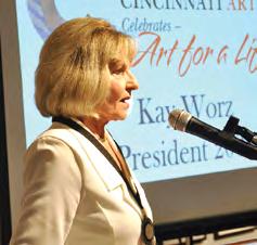 The audience heard from the two honorees, Kay Worz and Roger Heuck, recognized for their lifetime devotion to visual arts. Jonas Karp of Main Auction Galleries auctioned off eight paintings by significant local artists, then proceeded with a successful paddle raise.