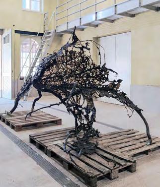 (Top) Auguste Rodin, “Jacques de Wissant,” 1885-86, cast 1989, bronze. Courtesy of Iris & B. Gerald Cantor Foundation (Right) Supermrin, “FIELD, linden [I am the prism to your shadows.],” 2023, grass bioplastic, linden trees from the domaine de Vaudijon