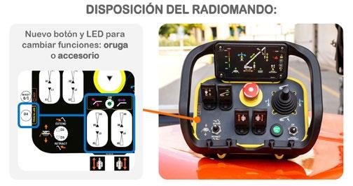 La operación se realiza mediante un control remoto HMF instalado en un soporte dentro de la cesta. Al acoplarla, se activa automáticamente una función de autonivelación, que mantiene la cesta en posición vertical. También permite la instalación incluso con hasta 5 grados de desnivel en el terreno. El sistema EVS calcula la capacidad disponible incluso si los estabilizadores no están completamente extendidos, permitiendo el uso en espacios estrechos o configuraciones asimétricas.