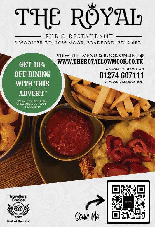 “Indulge yourself in the most Instagrammable cafe in Bradford” Breakfast • Brunch Patisserie • Dinner @cafe.jadore @Cafe.Jadore.Official 17 Chester Street BD5 0AF 01274 447325 To advertise in this magazine contact us now by calling 0117 3704377 or by emailing info@onscreenmagazine.co.uk ADVERTISE HERE CONTACT USNOW 01274 775927 • bloomsofbradford.co.uk 928 Leeds Road, Bradford, West Yorkshire, BD3 8EZ Fresh flowers for all occasions Blooms, an established florist located in the City of Bradford. We are committed to providing the freshest flowers, all carefully handmade and arranged by our professional staff, who collectively between them have years of experience of working in the flower industry. #bloomsbradford