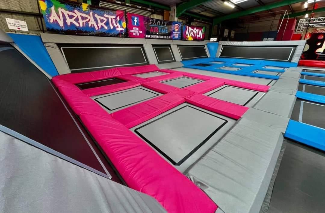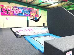 with 40 trampoline beds , cardio walls , a ninja warrior area , basketball hoops , a climbing wall , plus a giant airbag & jump tower . . . it' s a guaranteed heart racer!