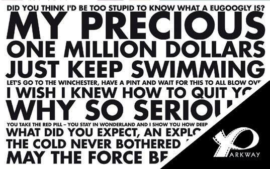 Stuck for a gift ideas this Christmas? Give the gift of film. Parkway Gift Cards are available in the cinema or online, and can be used for all food and drink as well as tickets.