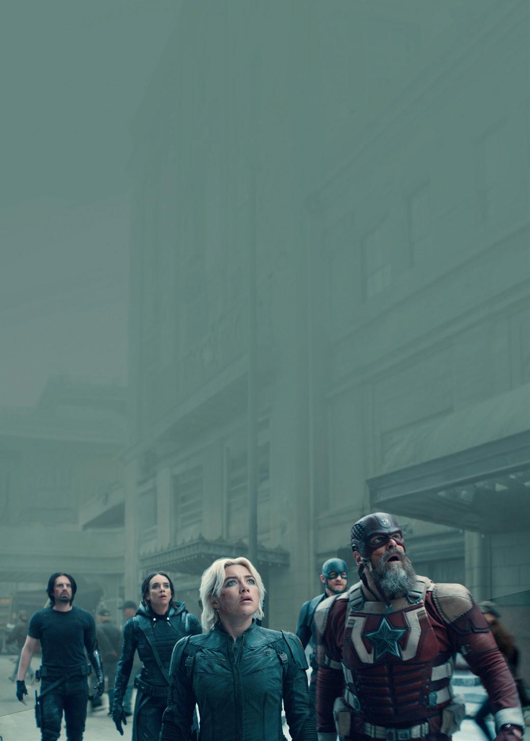 Marvel Studios and a crew of indie veterans who sold out present an irreverent team-up featuring depressed assassin Yelena Belova alongside the MCU’s least anticipated band of misfits. Yelena, Bucky Barnes, Red Guardian, John Walker, Ghost, Taskmaster, and Bob… together, reluctantly, they are the Thunderbolts*.