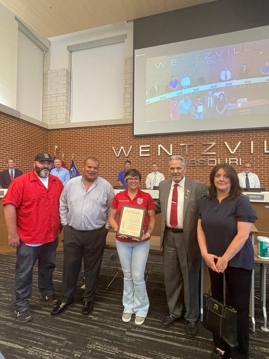 Nominationsareopenyear-round,buttimeisrunningoutto nominatesomeoneforthe2023award.Recognitioncategories includeservice,communityspirit,volunteerismandmore Nominationformsandeligibility requirementsareavailablebyvisiting www.wentzvillemo.gov/COTY The BoardofAldermenwillpresentthe 2023CitizenoftheYearAwardduring aBoardmeetinginearly2024.