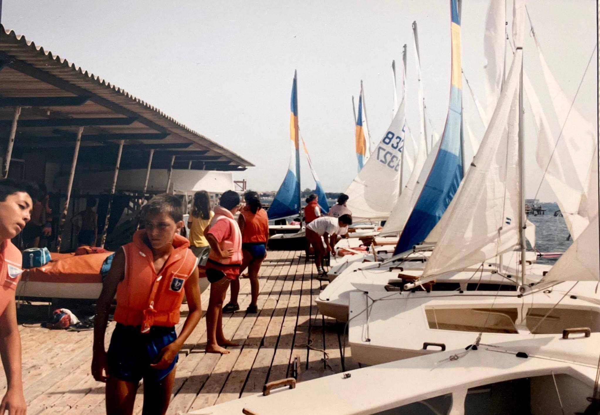 Pero la idea iba más allá de una simple escuela de vela y pronto surgió la idea de un centro náutico. Para eso empezamos a realizar campamentos de verano en convenio con las empresas de Campsa, Telefónica y la Comunidad de Madrid (Carabanchel, Retiro y otros). Eran campamentos masivos que ponían a prueba el estrés del grupo de monitores, así como el material utilizado. Ha sido uno de los mayores éxitos en la dinamicidad de la actividad náutica de nuestra Escuela. Pero los tiempos evolucionan y el concepto de centro náutico fue quedando atrás. También fueron cambiando las expectativas y la Escuela fue orientándose al espacio que ocupa ahora.