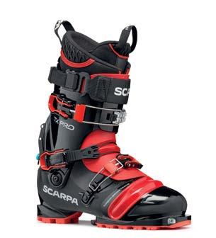 La nova TX PRO és la declaració d’amor de Scarpa pel telemark. Després de 15 anys d’investigació i d’escoltar de la comunitat, la firma italiana va realitzar la bota més lleugera del segment, compatible amb les fixacions NTN i Tele Tech. És un model amb el passeig i la lleugeresa com una bota d’esquí de muntanya. La tecnologia Triple Injection, inventada i desenvolupada per Scarpa específicament per al telemark, permet l’ús de materials amb densitat diferenciada per a la carcassa, talonera i puntera. El Torsion Bridge Frame garanteix una alta rigidesa torsional gràcies al material més rígid des del taló fins a la punta, travessant l’avantpeu.
