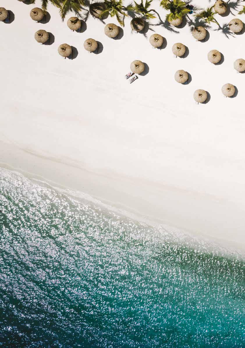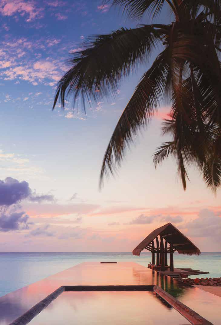 Bereits seit Februar dieses Jahres hat das exklusive Waldorf Astoria Platte Island auf den Seychellen geöffnet. Die Privatinsel erreicht man am besten im Privatflugzeug. Schon von oben kann man den schneeweißen Sand, das türkisblaue Meer, und die üppig grünen Palmen bestaunen. Unten dann: ein Paradies. Jede der 50 Villen ist eine abgeschiedene tropische Oase mit eigenem Swimmingpool, geräumiger Terrasse und BohèmeDekor. Sechs Restaurants und Bars bieten saisonale Gaumenfreuden von frischem Sushi bis hin zu Fusion-Küche aus Afrika und Lateinamerika. Im Spa sorgen sechs Behandlungsräume, ein Schönheitssalon, ein Hammam und eine Spa-Suite für ganzheitliches Wohlbefinden. Obst und Gemüse kommen aus dem eigenen Garten, Photovoltaik sorgt für die Energie. Im Meer vor der Insel lassen sich Hawksbill-Schildkröten, Adlerund Mantarochen und Walhaie bestaunen.