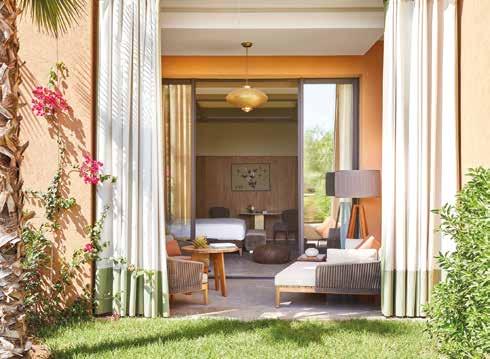 Die Luxushotelkette Hyatt ist in Marrakesch gelandet. Seit Ende 2023 setzt das Park Hyatt Marrakech neue Maßstäbe in Sachen Komfort. Das Refugium liegt vor den Toren der Altstadt und ist von Palmen, Olivenund Jacarandabäumen gesäumt. Die 130 geräumigen Zimmer und Suiten verteilen sich auf 16 Pavillons. In den öffentlichen Räumen und in den Gästezimmern sind mehr als 700 Kunstwerke ausgestellt, darunter traditionell gewebte Berberteppiche, aber auch Gemälde und Dekorationsobjekte zeitgenössischer Künstler. Im Spa stehen marokkanische Hammam-Rituale und ganzheitliche Therapien auf dem Programm. Außerdem im Angebot sind ein Friseursalon, ein Gym mit Yogastudio, ein 47 Meter langer Outdoor-Pool, ein 45 Meter langer Familien-Pool und ein 20 Meter langer Indoor-Pool. Auf der Speisekarte stehen Klassiker wie Tapas, kredenzt werden aber auch Gerichte mit avantgardistischem Ansatz.