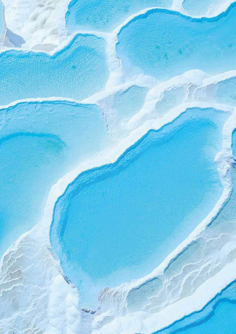 Wer träumt nicht von einem Bad in kristallklarem Blau? Die Kalksteinterrassen bei Pamukkale im Südwesten der Türkei sind über Jahrtausende durch kalkhaltige Thermalquellen entstanden. Das kalziumreiche Wasser hat eine Temperatur von 35 Grad und soll Kreislauf-, Gelenk- und Herzbeschwerden lindern. Allerdings wird der Ort die meiste Zeit des Jahres von Touristen überrannt, viele der natürlichen Becken sind oft leer, das Baden darin ist seit Jahren verboten. Baden ist nur noch in einigen künstlichen Becken möglich. Wer angesichts des enormen Besucherandrangs einen ruhigen Moment wie diesen findet, der erlebt dennoch einen echten Magic Moment.