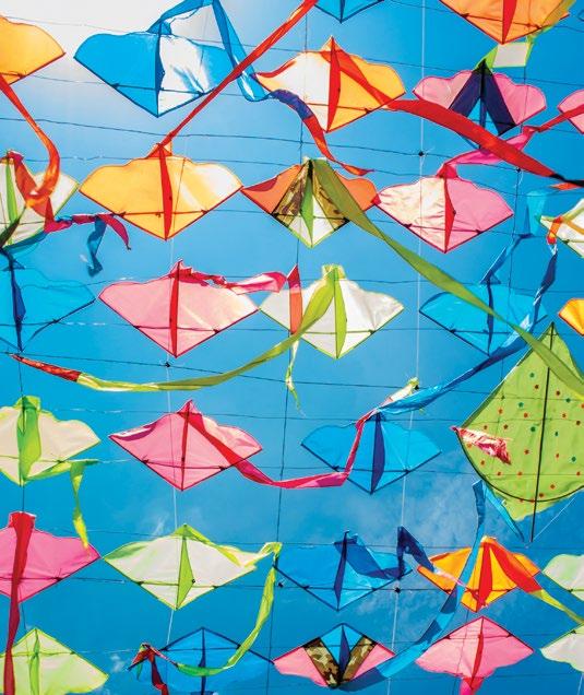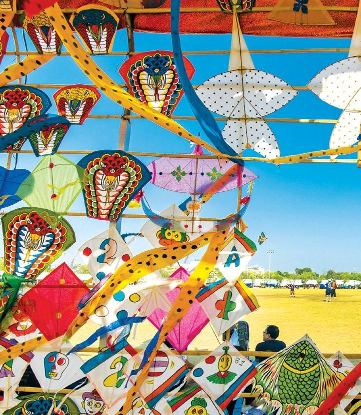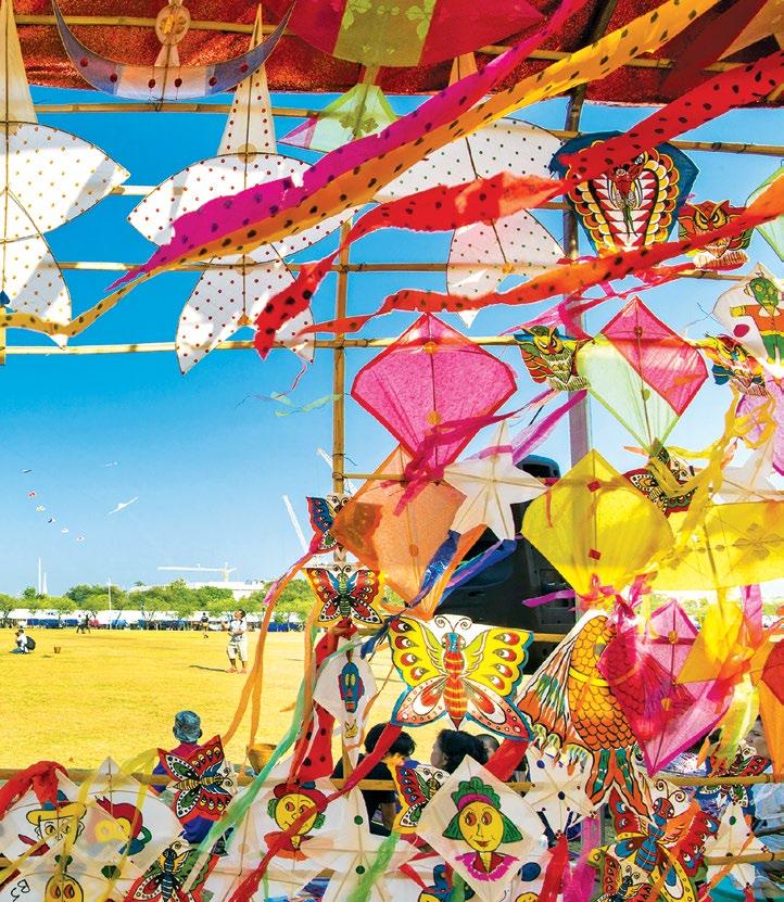 Seasonal winds carry traditional kites skyward in a soaring display of culture and tradition