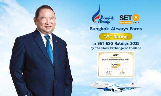 The SET ESG Ratings are recognised as one of Thailand’s key sustainability benchmarks, assessing listed companies based on disclosures, policies, and performance across environmental, social, and governance areas. In 2025, a total of 265 companies met the assessment criteria, with 67 achieving an “A” rating. Bangkok Airways’ inclusion in this group reinforces its credibility in ESG practices and reflects its continued alignment with internationally recognised sustainability standards.