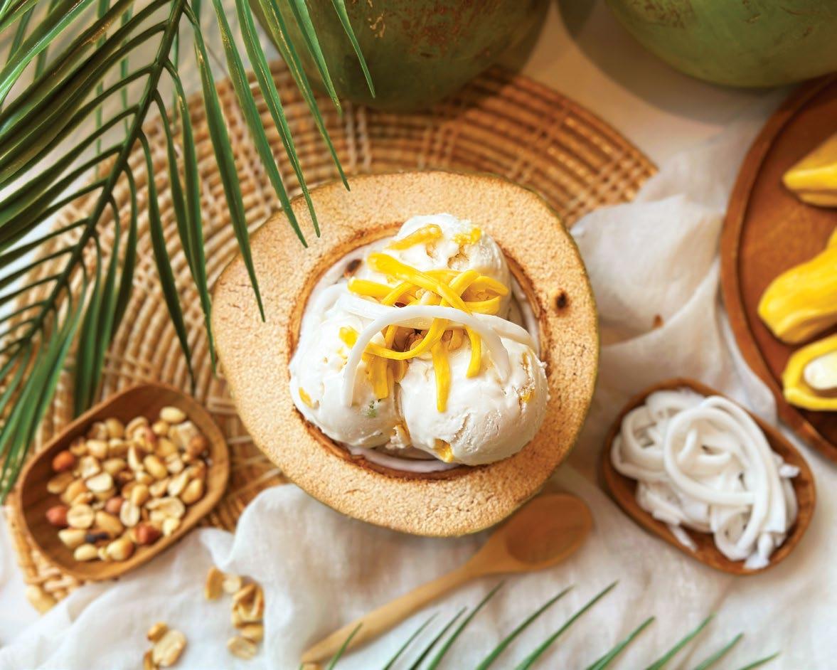 Coconut, in any form, is often your best cooling option on a hot day in Thailand – but few things are as instantly uplifting as a scoop of rich coconut ice cream, or “i-tim” as it is known locally. This subtly sweet, luxuriously creamy, non-dairy treat cools the body and lifts the spirits in one blissful mouthful.