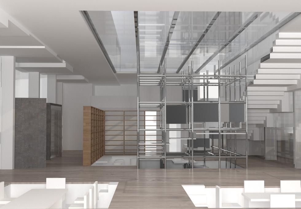 The “suspended staircases” in the east wing of the library connects each space that provide more opportunities for people to interact. People seems to shuttle from one module to another as they walking through the midstaircase between two separate buildings. Meanwhile, the bookshelves on both sides of the facade increase people's sensory experience and enhance people's desire in reading. In the daily recommandation book area, you can see the other people’s preferenced books and increase the opportunities for people to communicate. In this area, people can voluntarily place books instead of librarians, which is a manifestation of automation.