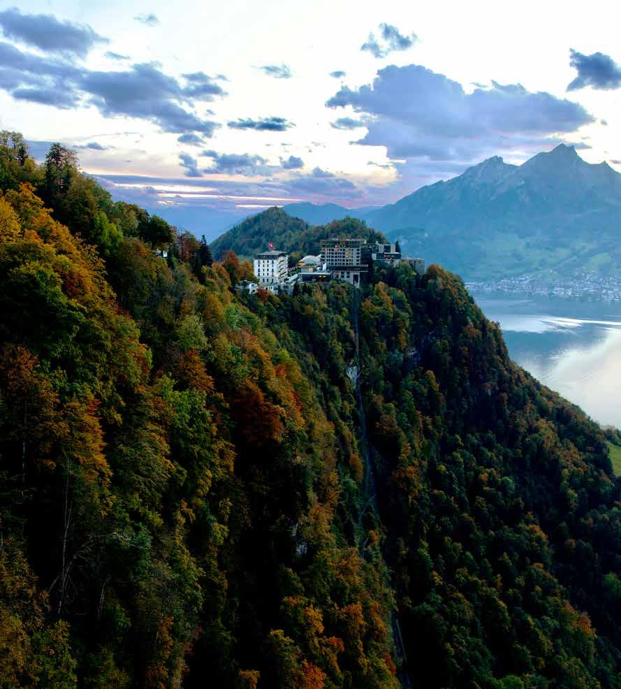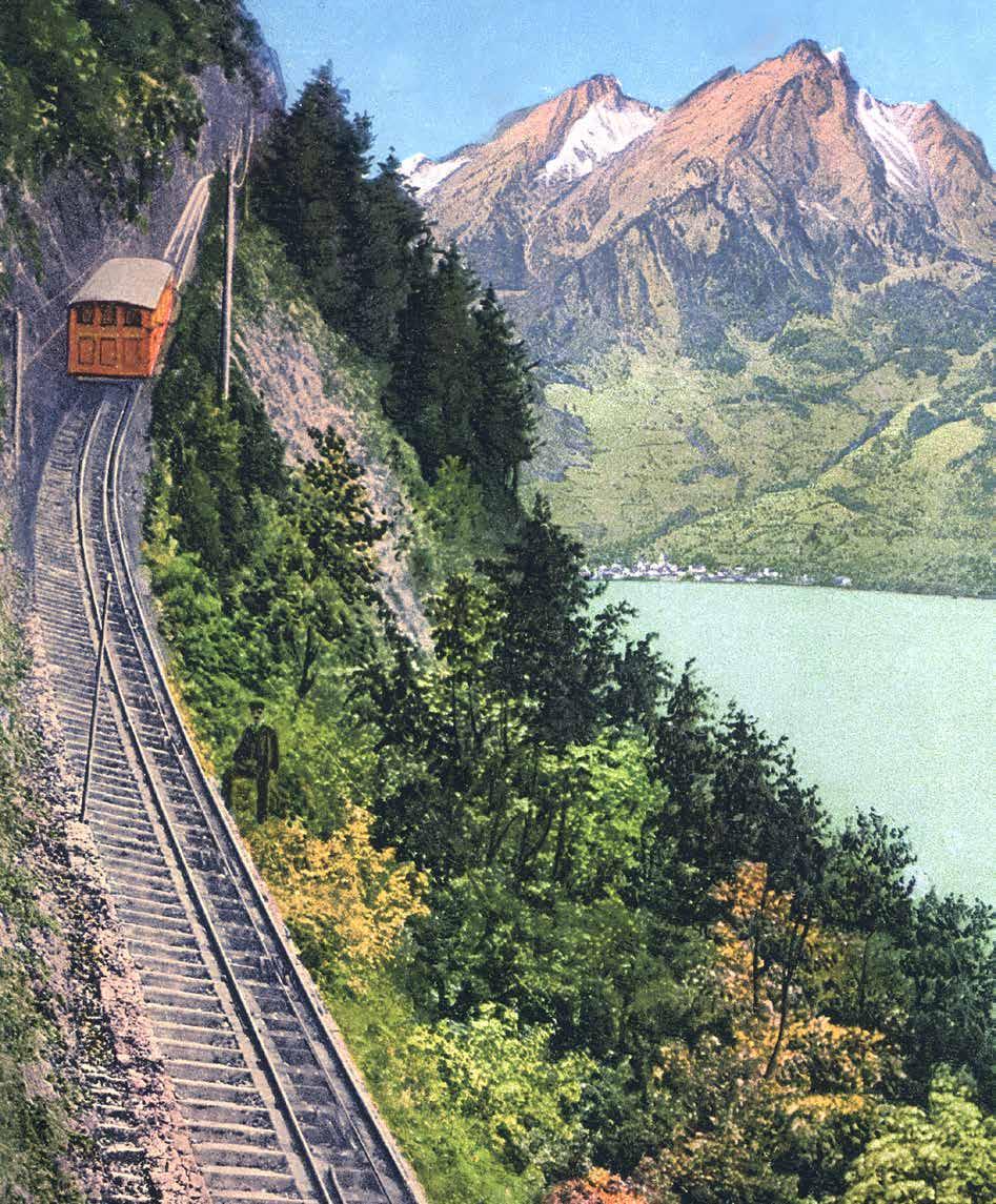 THE BÜRGENSTOCK FUNICULAR WAS SWITZERLAND’S FIRST ELECTRIC FUNICULAR, IN 1888.