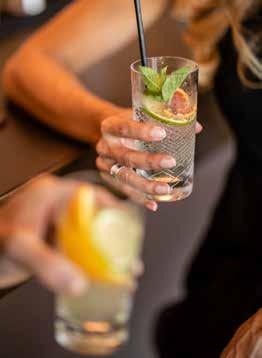 SHRUBS, KOMBUCHA, AND HOUSEMADE INGREDIENTS FORM THE BACKBONE OF THE BAR MENU. Shrubs, Kombucha und hausgemachte Zutaten bilden das Herzstück der Getränkekarte.