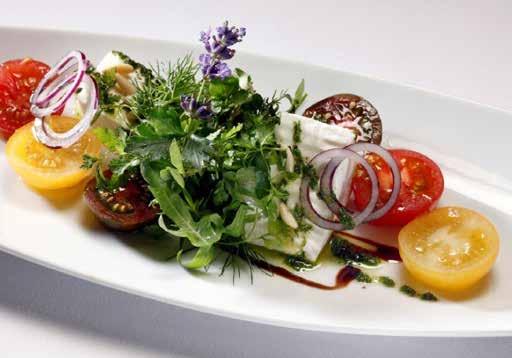 LEFT: DELICIOUS PAIRINGS AT SEVEN KITCHENS, FRESH HERBS AND FRUIT GARNISHES.
