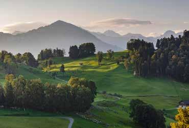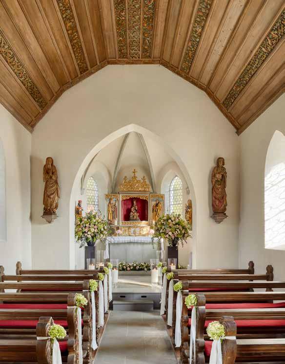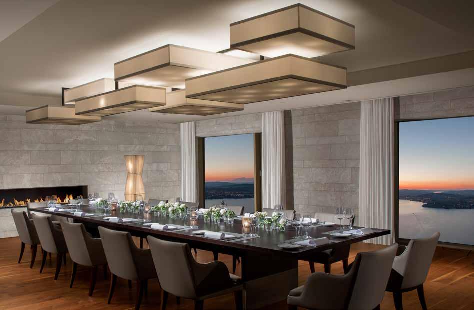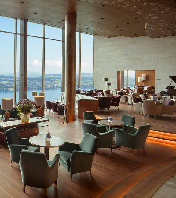 Soaring 500 metres above Lake Lucerne—sometimes even above the clouds—the deep blues of the lake and sky merge into a panorama of unparalleled beauty. Given this glorious setting, each event is destined, and designed, to reach great heights. Once-in-a-lifetime moments that live on in spectacular memories. When Audrey Hepburn got married in the Bürgenstock Chapel, she set the scene for cinematic weddings infused with timeless glamour. Couples can still say “I do” in the intimate 19th-century chapel, whose Gothic painted-wood ceiling and alcove altar brim with yesteryear charm. A cherished spot high above the lake, where breathtaking views and a rich history of love stories turn any wedding into a fairytale. A magical Forest Dinner is a midsummer night’s dream. Beneath twinkling lights and vine garlands, the table is a green wonderland of plants and flowers—even the surface is blanketed in grass. Guests nibble on mushroom-shaped pastries as fragrant smoke from the fire pit fills the air. Tucked under a canopy of chandeliers, greens, and lemons, or any other seasonal decorations, the Sunset Garden Dinner is a chic, alfresco affair. At a long banquet table festooned with flowers, guests feast on a menu that bursts with fresh-from-thegarden delights. Whether the event is lavish or discrete, no detail is left unturned by our experts, like organising sunset photo shoots, booking a jazz trio to serenade the meal, or cowbell place cards for an Alpine touch.