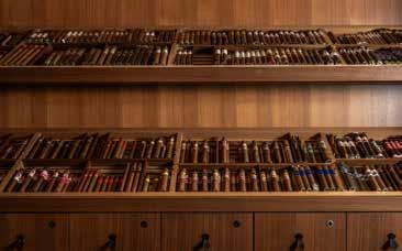 RIGHT: THE HUMIDOR ROOM, THE SIGNATURE BOTTLE, AN INTIMATE CIGAR LOUNGE.