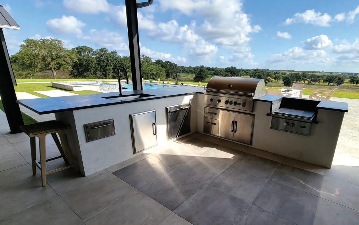 We visited Jimmy and Dawn Zaplac’s new country home to take a close-up look at their amazing outdoor kitchen. We also toured their custom-built home that fits their lifestyle of indoor-outdoor living. The outdoor kitchen overlooks a nice swimming pool and the gently rolling hills of Mission Valley.