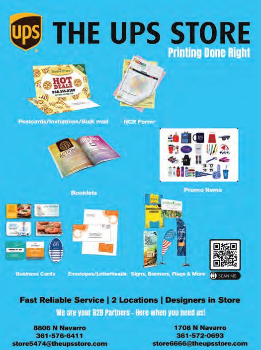 3 August/September 2023 | Discover361.com 3802 Navarro• Victoria, TX 361-572-3369 2807N. John Stockhauer •Victoria, TX 361-579-9929 1401N.Virginia •PortLavaca, TX 361-552-7476 In Touch withYou® YourCommunityCredit Union. EqualOpportunityLender JoinOurFamily .. .andenjoyfullser vice,PLUS! CAL-COM FEDERALCREDITUNION www.calcomfcu.com SavingsAccounts CheckingAccounts CertificateAccounts Money MarketAccounts IRA’s ClubAccounts InternetBanking ElectronicBill Pay Member TelephoneService VehicleLoans RVLoans MotorcycleLoans BoatLoans PersonalLoans HomeMorgageLoans Visa/MasterCard DirectDeposit PayrollDeduction Traveler’sChecks MoneyOrders Debit/ATMCards Notar ySer vice WesternUnion Wire Transfer andsomuchmore! Herearejust afewofourproductsandservices. •Delicious Sandwiches •Casseroles •Salads •Soups •Sweet Treats •Coffee& SpecialtyDrinks •Freshly Seasoned Pecans •Gourmet-To-Go Casseroles •Cakes •Cookies •Pies •PecanOil •GiftBaskets •LocalJams Est.1965 C U E R O Est.1965 C U E R O And Much More! 104 W. SouthRailraod•Cuero•361-275-5632•M-F8am-4pm www.CueroPecanHouse.com