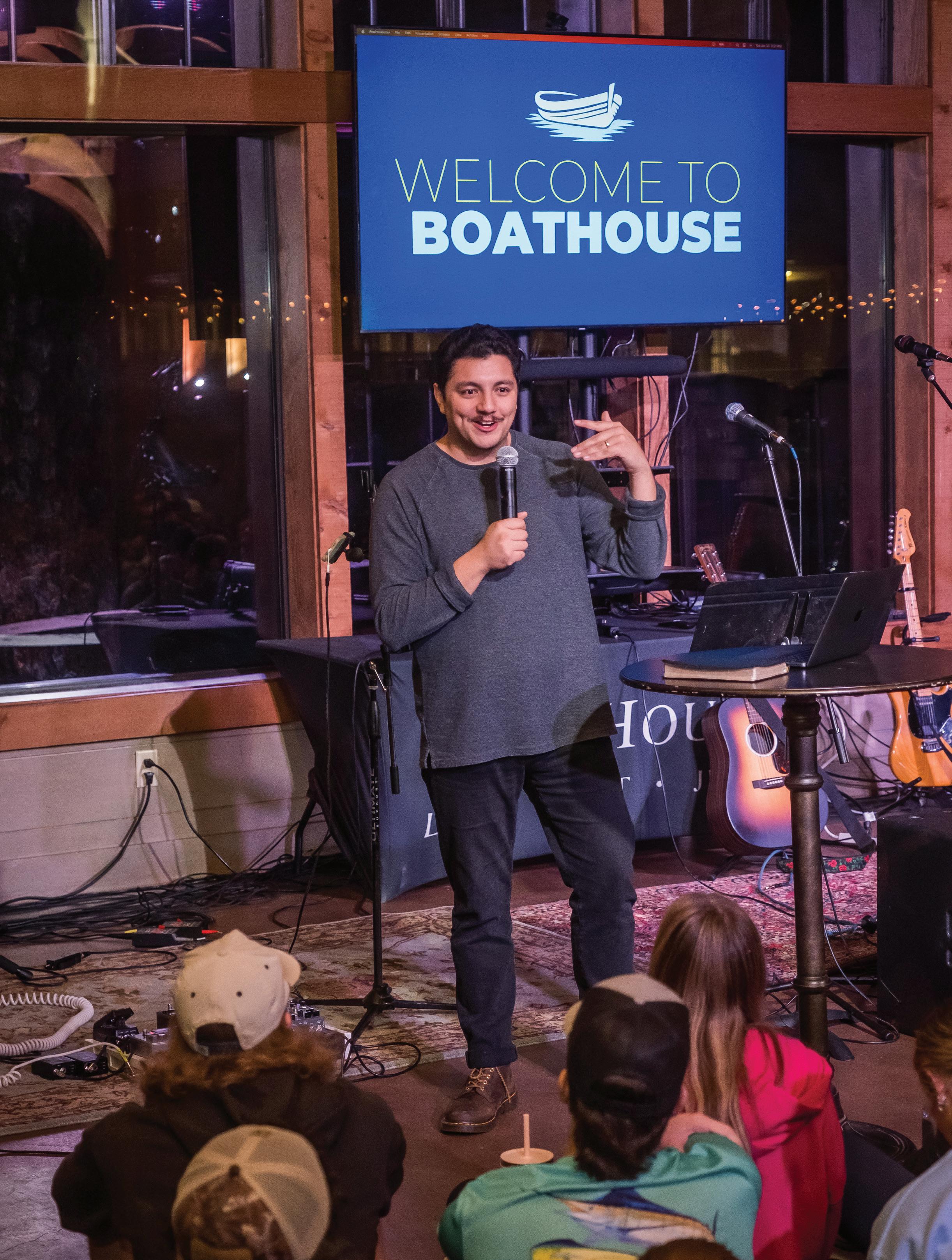 BOATHOUSE MINISTRY is a place where all are invited to worship. The night begins with dinner and games followed by worship and fun.