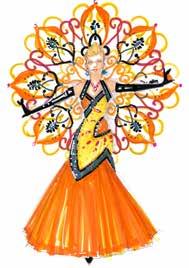 Decorative embellishments on the gown and its beautiful train traditionally reflect the festival’s theme with specially unique designs for each Queen.